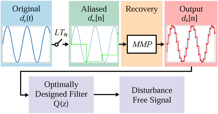 Feedback control becomes fundamentally challenging when disturbances approach or exceed the sensor’s Nyquist frequency. We propose an information recovery method that reconstructs structured, aliased signals far beyond such Nyquist limitations using slowly sampled measurement data. This is achieved by a unique synergy of a multirate model predictor (MMP), the internal model principle, multirate digital signal processing, along with finite impulse response (FIR) and infinite impulse response (IIR) designs. The effectiveness of the algorithm is validated through both numerical analysis and experimentation on a physical motor control hardware.